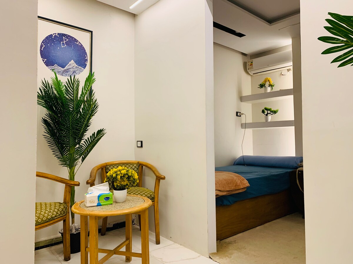 Disfruta de una cómoda estancia en un estudio moderno totalmente equipado, convenientemente ubicado junto a la Universidad MSA Justo el 6 de octubre. El lugar es adecuado para estudiantes, visitantes, viajes de negocios o cualquier persona que busque un alojamiento de hotel tranquilo y limpio. Características del estudio: - Wifi rápido. -Nteflex en LCD - Adaptación fuerte - Cocina totalmente equipada. - Hay estacionamiento disponible. - Cama de hotel acogedora y muebles limpios Encontrarás todo listo desde el momento en que llegues para disfrutar de una estancia cómoda sin fatiga ni equipo. Siempre nos ocupamos de la comodidad de los huéspedes y ofrecemos una estancia limpia y sin problemas durante todo el período de la reservación.