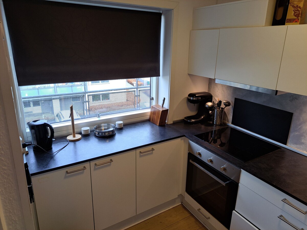 Hyggelig lejlighed 2 kilometer fra Aalborg centrum. Gratis parkering og enkelte ladestandere i området. Privat bolig med funktionelt køkken, eget toilet, vaskemaskine, altan med grill og ingen støj. Slap af med hele familien eller dine venner i denne fredfyldte bolig.