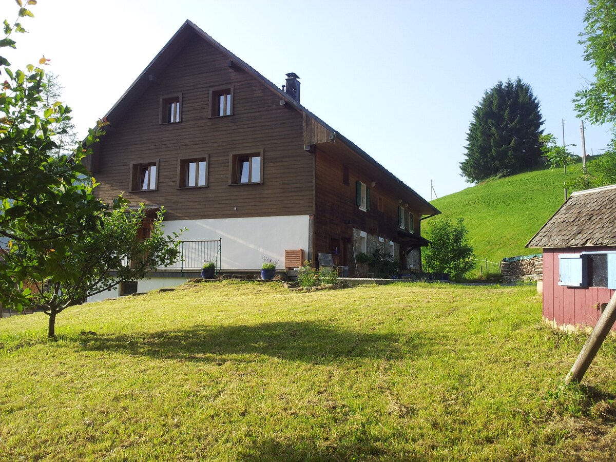 (URL OCULTA) Apartamento de vacaciones en una granja reformada de 1860, impresionantes vistas al valle de Valsainte, tranquilo, muy cómodo, cálido y luminoso, 3 estrellas, acceso independiente, balcón y gran jardín privado, naturaleza virgen, lugar tranquilo en el corazón del parque natural Gruyère Pays-d'Enhaut. Ideal para unas vacaciones en familia (suite familiar) o con amigos. Arenero, columpio y pequeña cabaña para niños. Tumbonas y barbacoa para adultos. A 5 minutos de Charmey.