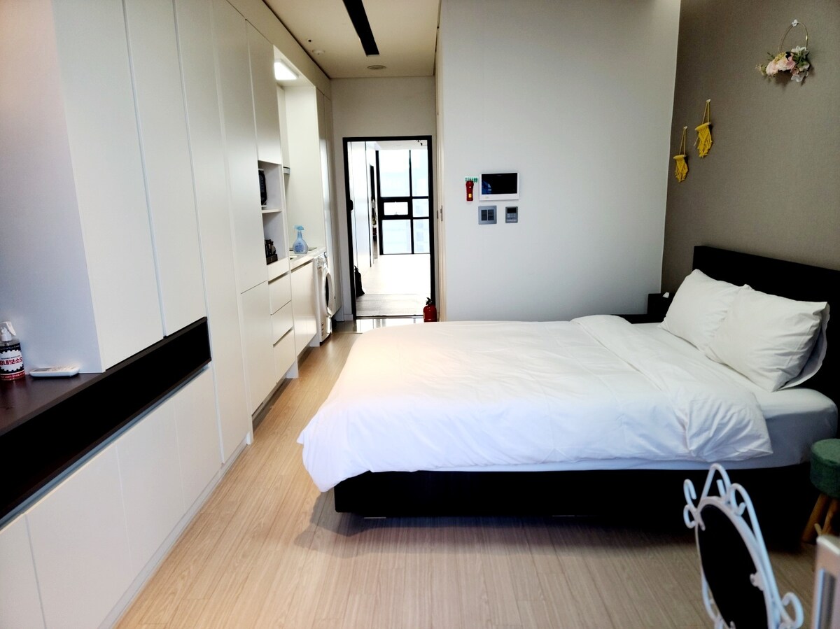 🏙 [Acerca de la ubicación y los alrededores del alojamiento] Se encuentra en el centro de la ciudad de Sokcho, por lo que el transporte es conveniente, y se puede disfrutar de los principales restaurantes y atracciones a pie. Totalmente equipado con utensilios de cocina, lavandería disponible y puede alojar hasta 4 personas, con vistas al mar y acceso al mar, al mercado central, a Abai Village y al centro comercial Youth Mall a pie. 🧺 [Limpieza e higiene] Todas las sábanas y toallas se lavan diariamente y se reemplazan con secado de esterilización a alta temperatura. Ofrecemos ropa de cama limpia y acogedora de estilo hotelero y un ambiente agradable. 🔍 [Comodidades] Se proporcionan electrodomésticos y utensilios de cocina esenciales como cafetera, microondas, lavadora, refrigerador, etc. para comidas sencillas y lavandería. En el primer piso, hay una tienda de conveniencia E-Mart 24 (07:00-24:00), lavandería, Yechon Seolleongtang y Mexicana Chicken. Hay un campo de golf de pantalla y una tienda de masajes en el segundo piso para un uso conveniente. 👩💼 [Instrucciones para el anfitrión] En el Sunrise Hotel, preparado por Jini con cuidado Disfruta de un día relajante y especial en el centro de la ciudad.