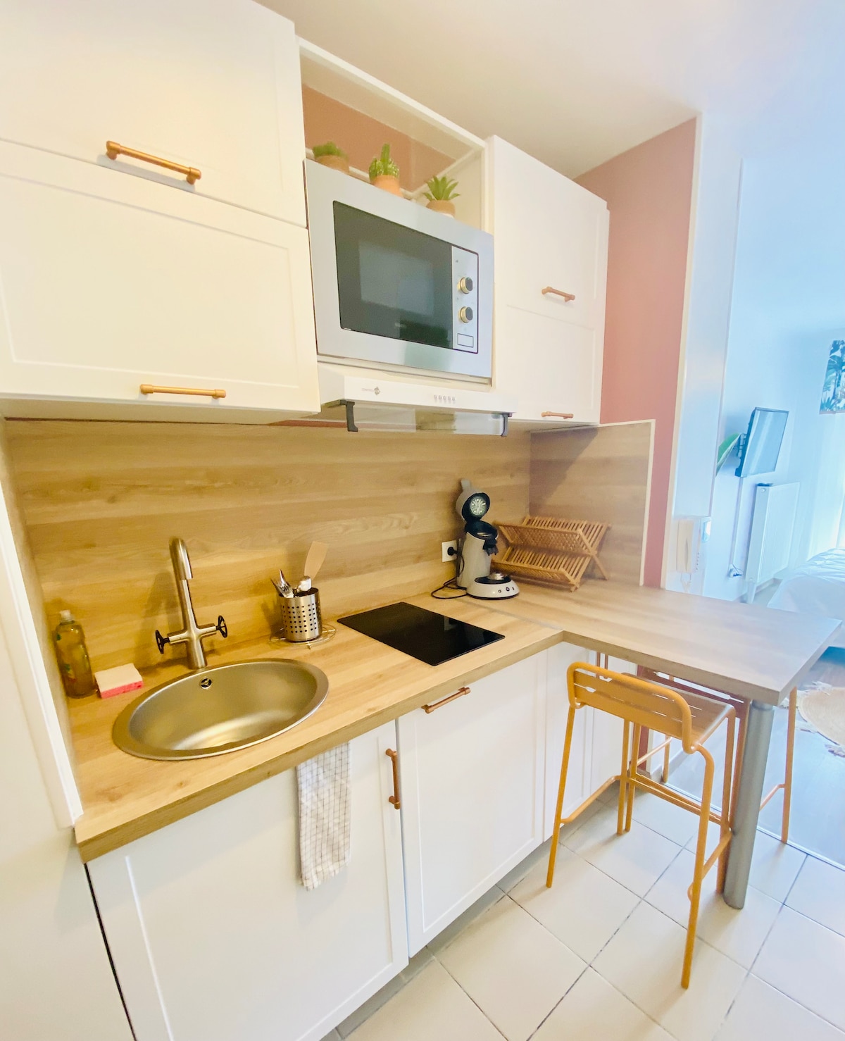 Este elegante y céntrico estudio se encuentra en una residencia de lujo y muy cerca de los bares y restaurantes del puerto y del centro de Caen. Dispondrá de una sala de estar, una cama cómoda, una cocina equipada y un baño agradable. El apartamento es encantador y respetuoso con su entorno. Es el lugar ideal para estancias cortas o largas. Estará a dos pasos del tranvía para que pueda descubrir la ciudad cargada de historia o para ir a trabajar.