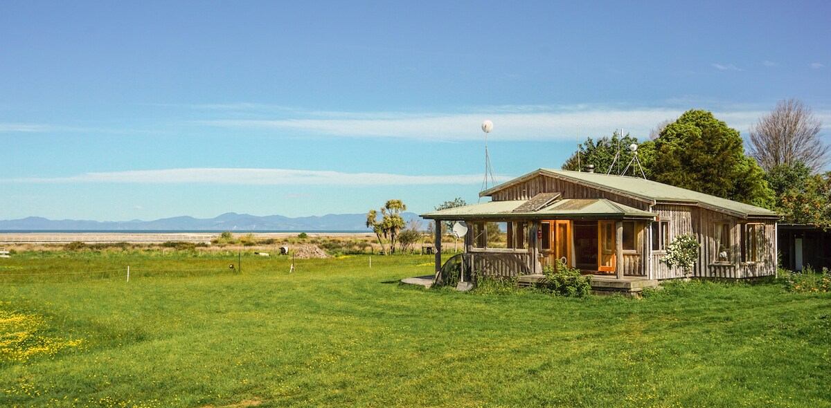 Un clásico bach de playa kiwi. Te damos la bienvenida a que vengas a alojarte en los límites del Abel Tasman en nuestra granja y entre la naturaleza y disfrutes de las vistas de las colinas del Abel Tasman y las vistas al mar de la bahía de Tasman. Este es un bach de 1 dormitorio de la vieja escuela con una cocina increíble y una sala de estar centrada alrededor de una acogedora chimenea. La estancia incluye wifi ilimitado gratuito con cocina completa y baño. La recepción principal está a solo 300 metros de distancia para cualquier ayuda o consejo local. El legendario Park Cafe está justo al final de la calle, a 100 metros.