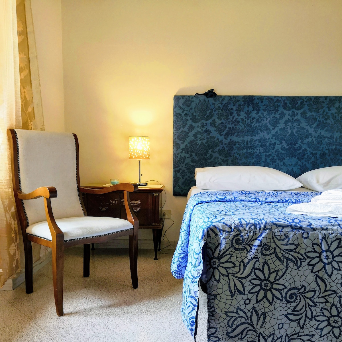 L’appartamento Zaffiro per 2 persone è provvisto di 2 letti ad una piazza. Lo stile è Classic Retrò costituito da pareti bianche che permettono il risalto di un arredo in legno scuro, contrasto garantito anche dalle ampie vetrate delle porte finestre. Nel salottino si trova un angolo cottura ideale per preparare la colazione. La zona notte presenta 2 letti ad una piazza. Ideale per chi arriva in città per lavoro o affari.