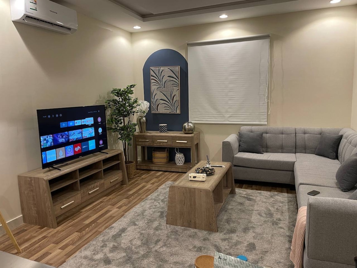 Un apartamento cerca del Aeropuerto Internacional de Abha (a 4 minutos) con un diseño lujoso y espacios amplios. Consta de un dormitorio, una sala de estar, una sesión al aire libre y un baño. Acceso inteligente y entretenimiento (Suscripción a Netflix - consola de juegos) Además del rincón del café y la preparación Destaca su proximidad a los principales lugares: - Proyecto de barco de entretenimiento (min) - Paseo Al Rawdah y parque del aeropuerto (min). - Lee Premiere (3 minutos) - Calle Al Mih (a 5 minutos). - Abha Yard (a 7 minutos). - Lavinda Park (a 7 minutos). Al Rashed Mall (a 11 minutos). Feliz estadía
