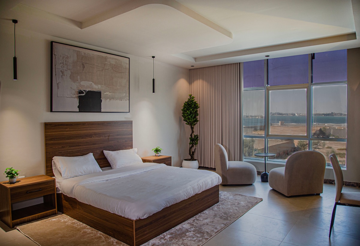 أبحر ريزيدنس في أرقى أحياء جدة - أبحر الجنوبية. دخول ذاتي وأمان عالي بكاميرات. خلف طريق الملك عبدالعزيز، وعلى بُعد دقيقتين بالسيارة من الواجهة البحرية، ٤ دقائق من ملعب الملك عبدالله. محاط بمطاعم وكوفيهات فاخرة. Obhur Residence in South Obhur, Jeddah’s top area. Self check-in, high security. 2 min drive to waterfront, 4 min to King Abdullah Stadium. Surrounded by fine dining & cafés.