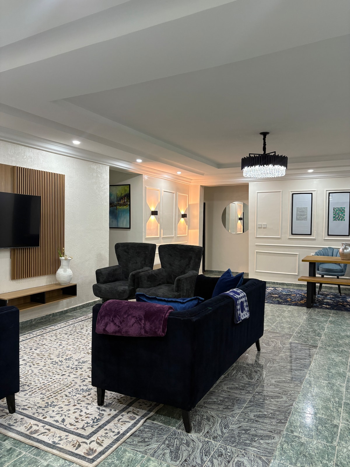 Disfruta de una experiencia elegante en este apartamento céntrico. Un apartamento de 2 dormitorios con características como PlayStation 5 y últimos juegos bajo petición, reloj antiguo del padrino, TV de 65 pulgadas. También ofrecemos seguridad estricta, vigilancia las 24 horas, los 7 días de la semana, energía las 24 horas, los 7 días de la semana con generador de respaldo, WIFI, estacionamiento gratuito, proporcionando a los residentes una sensación de seguridad y tranquilidad. Tenemos los mejores centros comerciales y clubes cercanos como 4U Supermarket, H-Medix, supermercado Pay Greens, etc.