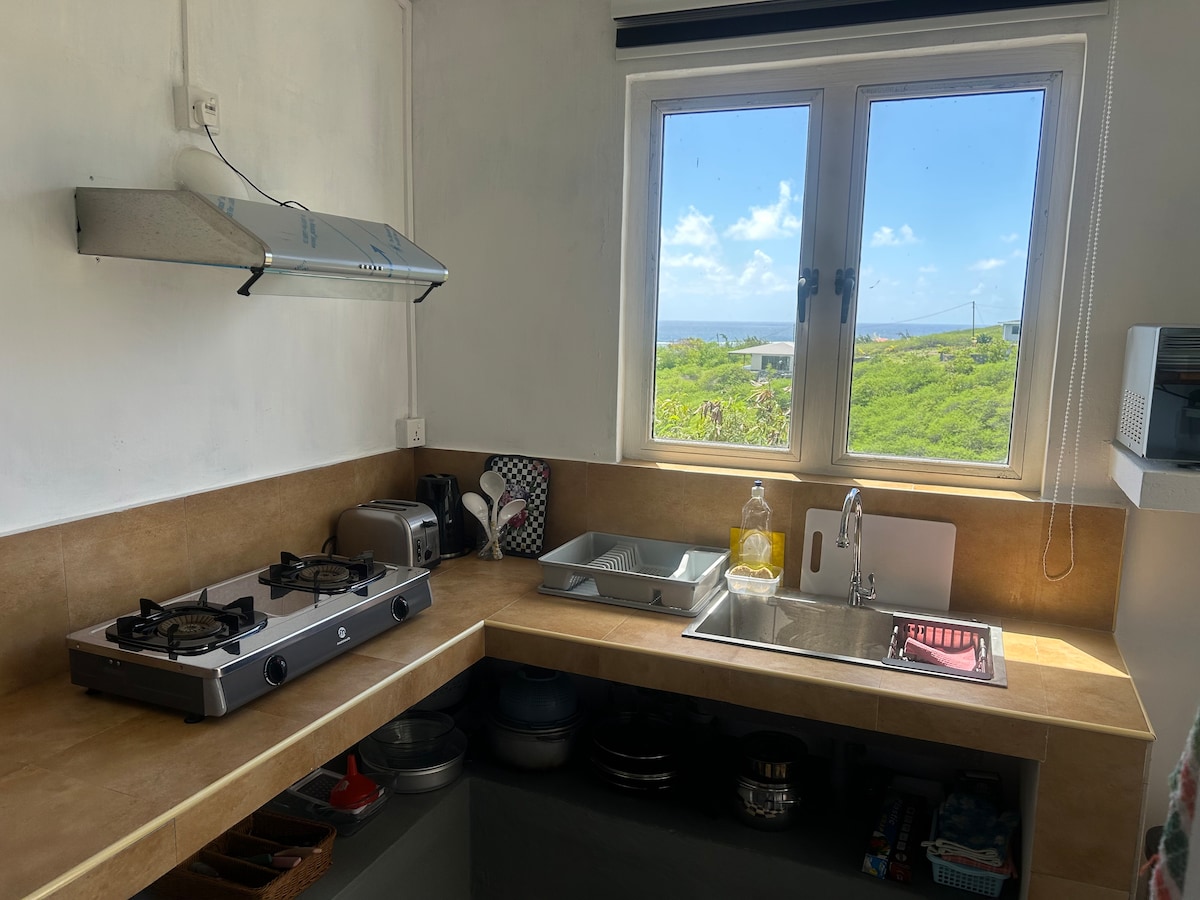 petite maison de tôle rouge typique de l ile Rodrigues..qui surplombe la mer avec vue magnifique sur le lagon, proche de la plage avec toutes activités. accessibilité facile, commerces à proximité . petit déjeuner et déjeuner possible moyennant 450rs par personne pour le dejeuner et 250rs par personne pour le petit dejeuner scooter disponible sur place a la location 600rs par jour transfert aeroport compris