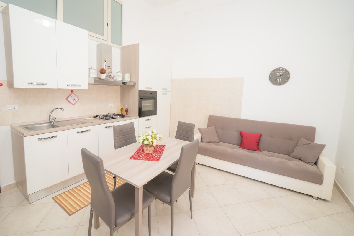 Casa Giove, inmersa en una residencia bien cuidada, tiene una entrada independiente. Tiene una terraza relajante para tus cenas de verano y momentos románticos, cocina equipada y balcón. Un dormitorio elegante con una enorme ventana, vistas al mar y castillo de Aci Castello, enmarca una estancia fabulosa. Un cómodo sofá cama está ubicado en la sala de estar-cocina. Puedes estacionar tu auto en tu plaza de estacionamiento dentro de la residencia.