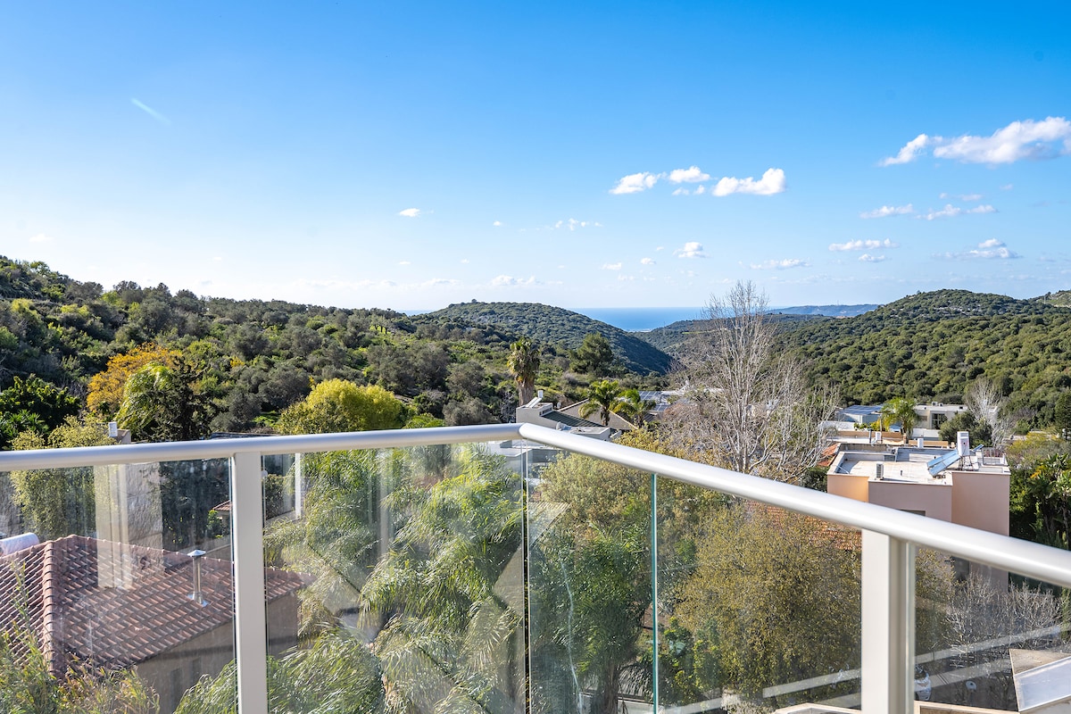 Loft diseñado yúnico. Espectacular terraza para el paisaje occidental hasta el valle de Zvulun Carmel y el mar de la escuela secundaria. Sillones de bronceado de lujo y comedor sombreado. Parrilla de alta calidad en el balcón. El loft con un raro parqué de madera natural, una cama tamaño queen holandesa, una ducha ducha ducha con ventana al mar. El excelente estereosistema con altavoces Dali. Una variedad de tipos de alcohol en un bar gratuito de 50pulgadas Conexión TVnet Conexión Netflix Refrigerador Una tostadora de café y una cocina cuidadosamente equipada, aire acondicionado, una cama extraíble en la sala de estar, rutas de senderismo tranquilas y tranquilas en la naturaleza. Límite de altura en el área de camas y algunos servicios que los ciudadanos israelíes pagan además de la cuba