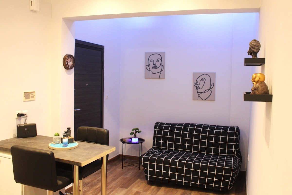 Un estudio de 50 m2 único y estéticamente agradable, a poca distancia a pie del corazón de Monastiraki y la Acrópolis. Equipado con wifi rápido, aire acondicionado y NetflixTV para que tu estancia sea inolvidable. Ubicado en un barrio seguro y animado con acceso directo a todo el transporte público y rodeado de restaurantes, cafeterías y tiendas locales. ¡El mejor lugar para relajarse después de un ajetreado día explorando la hermosa Atenas!Disfruta de una experiencia de lujo en este céntrico alojamiento.