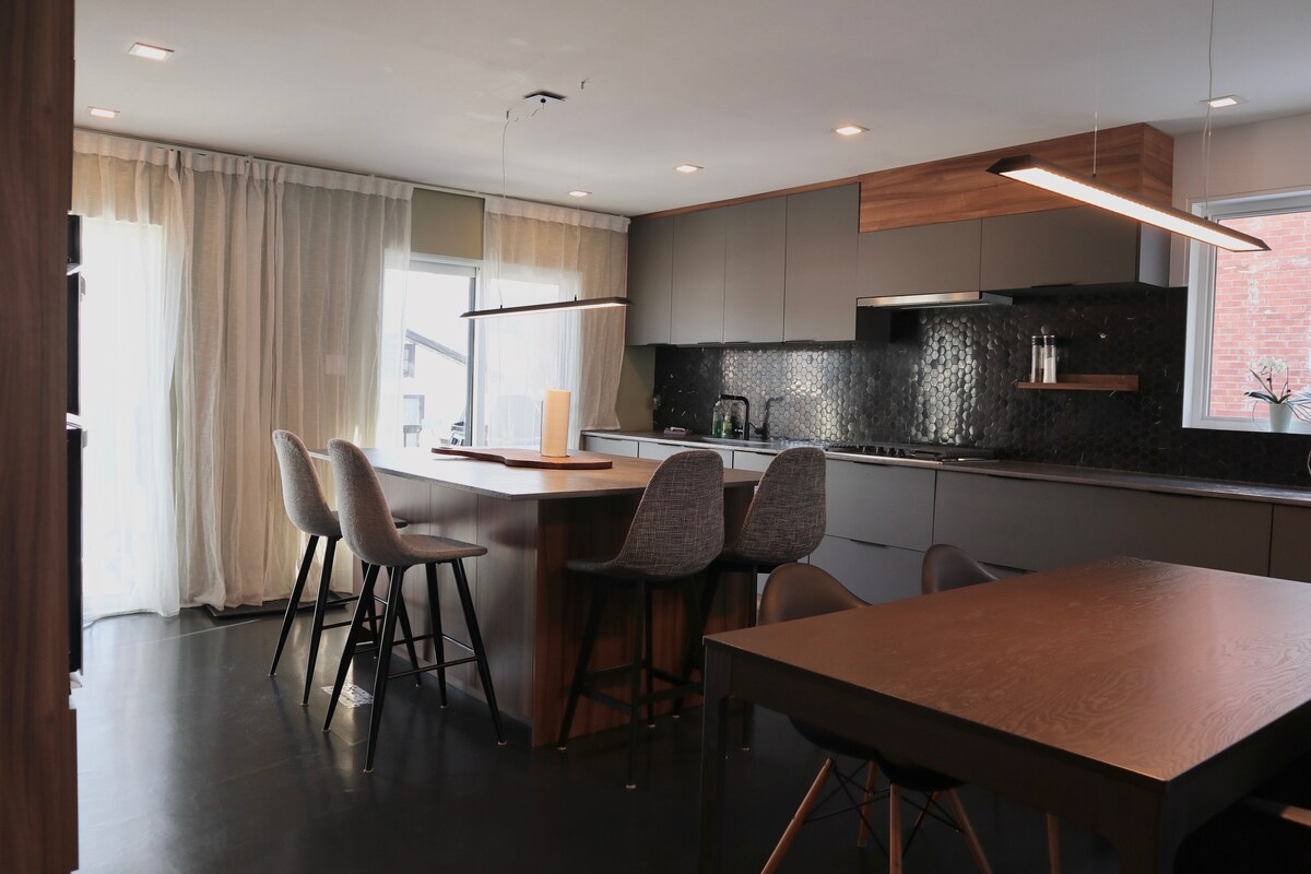 Acogedor chalet atemporal conceptualizado por los arquitectos de _naturehumaine. Ubicado en el acantilado a una altitud de 490 metros (1600 pies), su diseño único se distingue por la audacia y la originalidad y encaja con la armonía en su entorno. Rodeada de bosque, la cabaña ofrece vistas impresionantes del monte Glen y la naturaleza circundante, protegida en gran parte por el Corredor de los Apalaches. El lugar silencioso perfecto para relajarte y relajarte. Foto: Adrien Williams / S.A. CITQ #302449