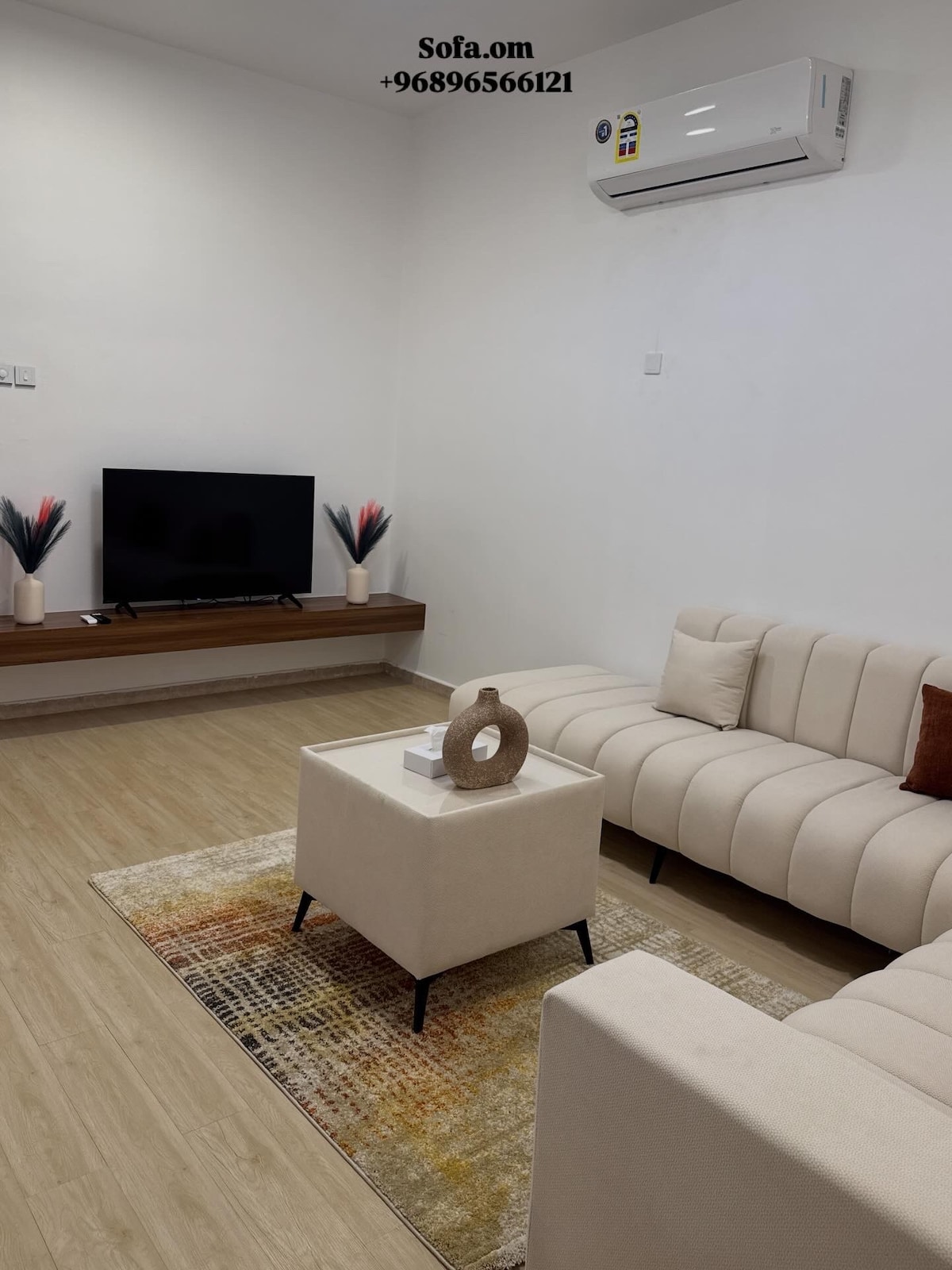 Experience modern comfort and hotel-level luxury in this beautifully designed 1-bedroom apartment. The space features premium finishes, a spacious living room, and a brand-new Smart QLED 65 inches Toshiba TV with Netflix included, ideal for relaxing evenings. Enjoy a panoramic view of Muscat, including a stunning sandy mountain view on one side and a direct view of the prestigious Al-Hattali Hotel on the other.