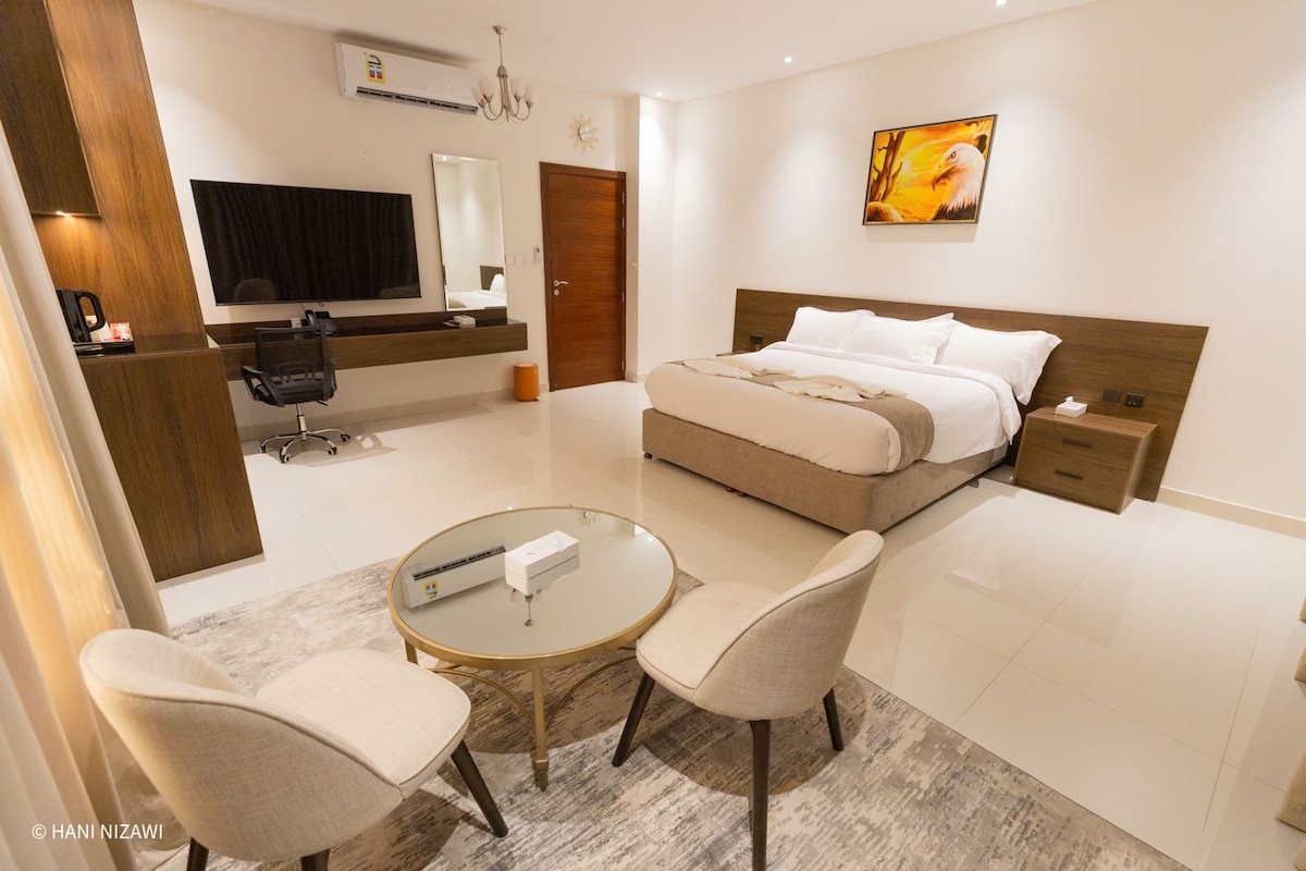 Enjoy comfort and privacy. Misfat al-Abriyeen The spacious interior features a spacious living room, a master bedroom, and an elegant coffee corner. Air conditioning ensures a refreshing atmosphere, and a bathroom and bathtub provide maximum comfort.