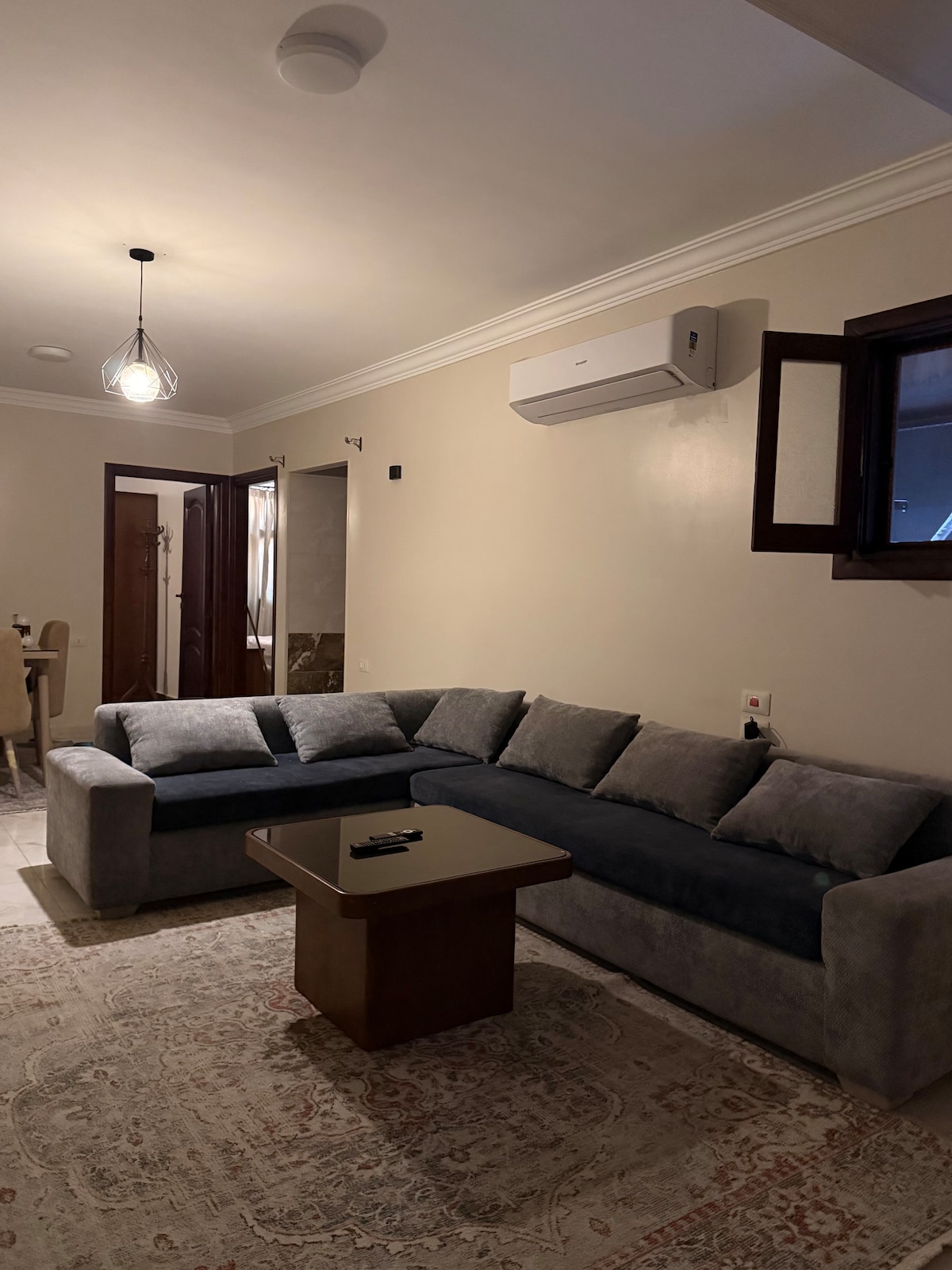 Bienvenido a tu acogedor apartamento de un dormitorio a pocos minutos del Aeropuerto Internacional de El Cairo. Diseñada para la comodidad y conveniencia, esta moderna unidad es perfecta para viajeros, parejas y huéspedes de negocios que buscan una estancia limpia y relajante cerca de todo en el Nuevo Cairo. El apartamento cuenta con un cómodo dormitorio, una luminosa sala de estar, cocina americana totalmente equipada y WiFi de alta velocidad, ideal tanto para estancias cortas como largas.