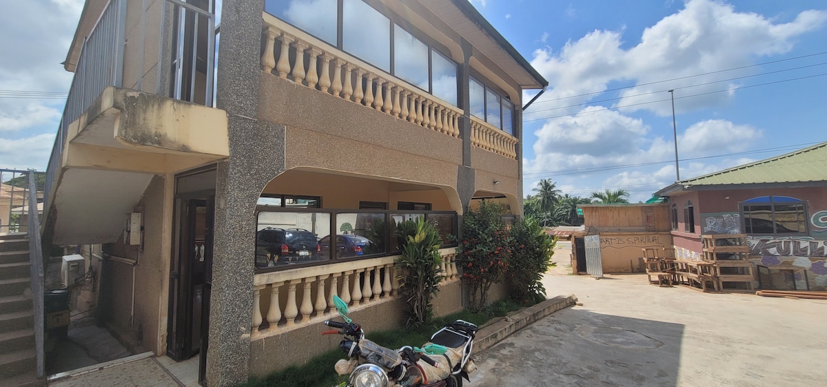 Esta casa de lujo está convenientemente ubicada en New Edubiase, en la carretera Takoradi-Kumasi. Se encuentra a unas 28 millas de Obuasi. Ubicado en las afueras de la ciudad, en un entorno de vegetación serena. Está a unos 40 minutos en auto de Obuasi, a 30 minutos en auto de Assin Fosu y a aproximadamente una hora en auto de Kumasi. La casa tiene su propio suministro de agua, todas las habitaciones tienen aire acondicionado. Cada habitación tiene su propio baño. El baño principal tiene una bañera de tipo jacuzzi. La casa está completamente azulejada.