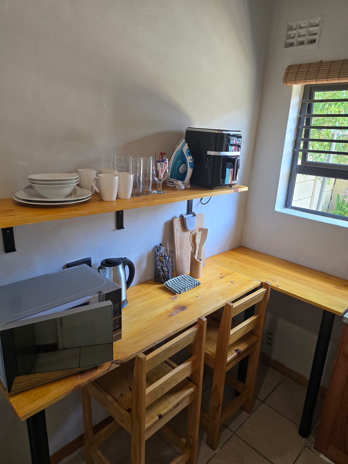 Ideal para estadías cortas. Estacionamiento seguro fuera de la calle. Ubicación conveniente: a 5 minutos del aeropuerto, St George's Park, escuelas grises. A 7 minutos de la playa. A 35 minutos de Addo Elephant Park. Ubicado en el jardín de una casa familiar y en el estudio de arte del propietario. Baño completo en suite, la cocina pequeña tiene hervidor de agua, microondas y nevera. Cama doble tamaño queen, wifi gratuito, electricidad solar y suministro de agua independiente. Cafeterías, centro comercial a 5 minutos a pie.