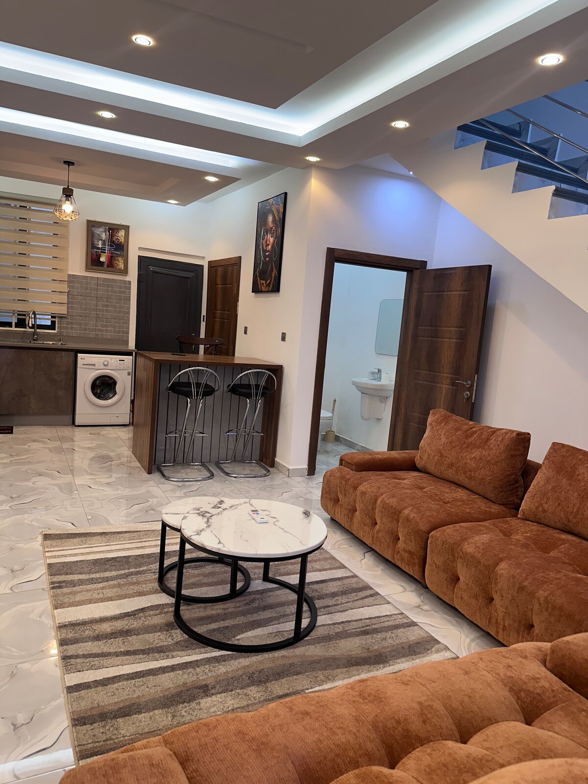 Comodidad moderna en un departamento elegante y bellamente iluminado con un acabado contemporáneo limpio y un cálido resplandor nocturno que se siente instantáneamente exclusivo y acogedor. Situado en un barrio tranquilo a 19 minutos del aeropuerto, a 17 minutos del centro comercial Accra, a 10 minutos del centro comercial Atlantic y a unos 30 minutos de las montañas Aburi, ofrece fácil acceso a tiendas, centros de negocios y centros de ocio. Nunca estás lejos de todo lo que necesitas, pero aún así lo suficientemente escondido como para relajarte y descansar. Un refugio elegante al que te encantará volver a casa.