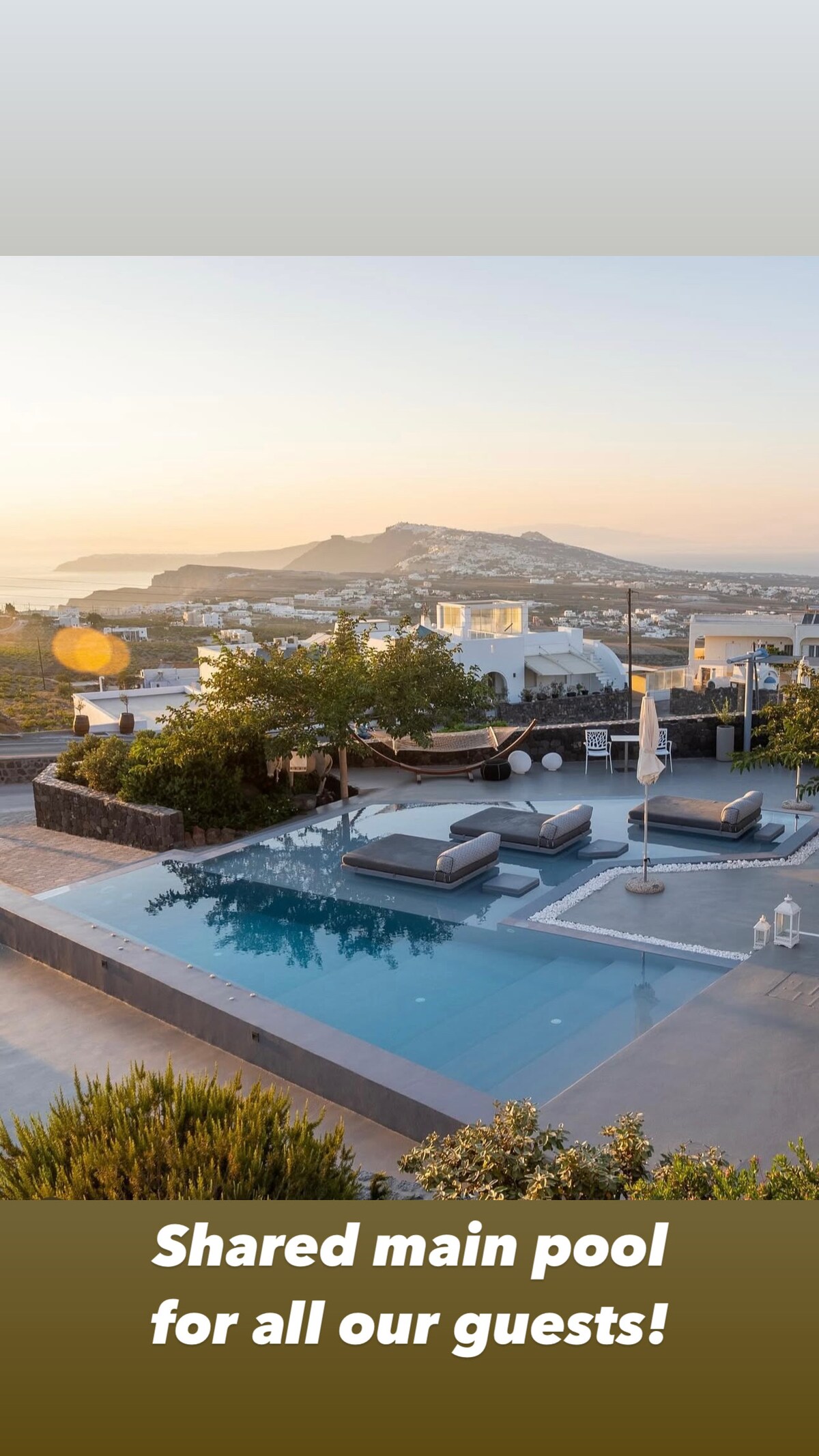 Las suites, con una vista magnífica del volcán de Santorini, se encuentran en el piso superior de la propiedad. Lujosos, espaciosos, modernos y amueblados con muebles de alta gama, su principal objetivo es ofrecer relajación al más alto nivel. Además, los balcones de las suites cuentan con un jacuzzi y una zona de comedor para que nuestros huéspedes disfruten del sol de Santorini en cualquier momento de su estancia.