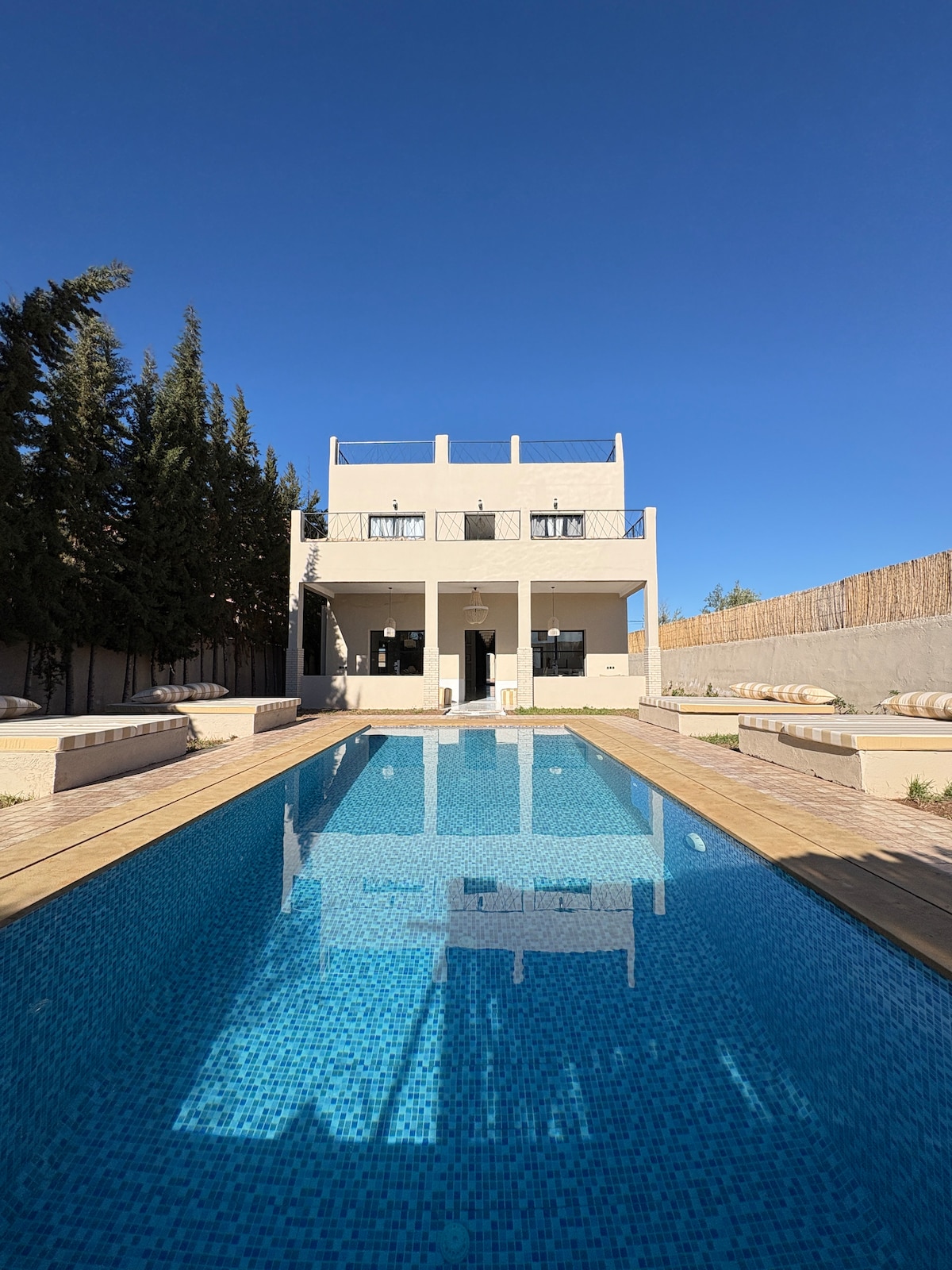 🌴 Villa Oxygène – su oasis privado en Aghmat. Disfrute de una piscina sin vecinos con zona infantil, un gran jardín, un trampolín de 3 m y un columpio. Ideal para familias, la villa ofrece aire acondicionado, Wi-Fi y posibilidad de cocina bajo petición. 📍A 35 minutos de Marrakech y Ourika, cerca de Smile Park, Aqua Parc y restaurantes. ⚖️ De acuerdo con la ley marroquí, el certificado de matrimonio es obligatorio para las parejas marroquíes.