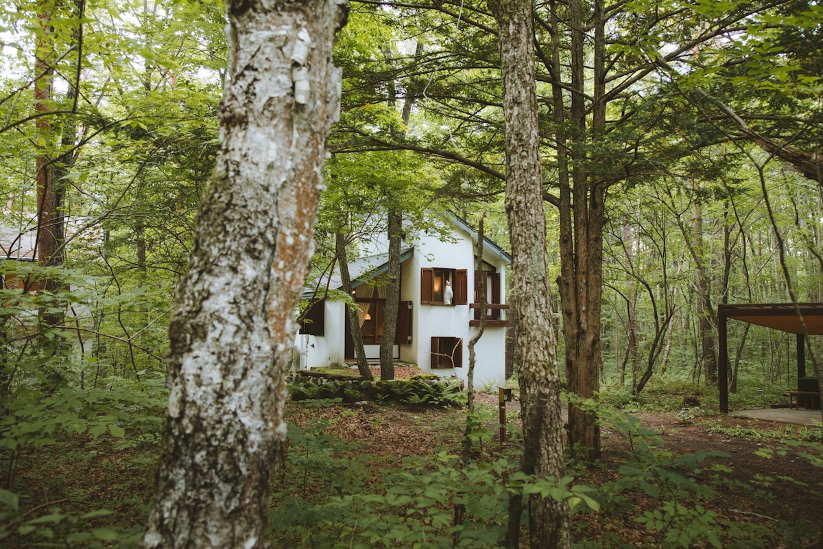 Cabina entera en un bosque a una altitud de 1100 metros.¡Los abedules te dan la bienvenida desde la entrada y disfrutan de la naturaleza en un entorno tranquilo! El interior está decorado con mucha madera y barbacoa en la espaciosa terraza de madera. La mini cabaña está equipada con un cine en casa de pantalla grande. Estufa de leña con grandes ventanales, hecha por Waterford, Islandia. También hay buen acceso a Manza Onsen, Kusatsu Onsen, Karuizawa City, Karuizawa Snow Park, Parcolette Tsumagoi Ski Resort y Kazawa Ski Resort (80 % soleado en invierno). A poca distancia a pie del Hotel Green Plaza Karuizawa, aguas termales (700 m). Karuizawa Toy Kingdom (a 4 minutos en auto).