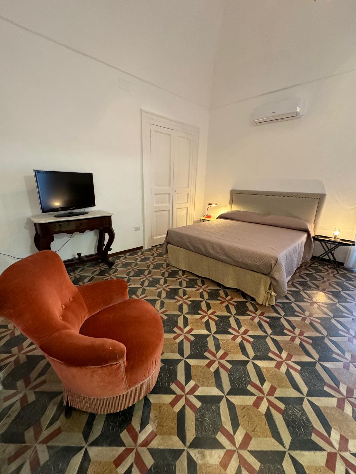 Donna Rita es una elegante suite con baño privado en un edificio histórico del siglo XVII en el centro histórico de Meta. El edificio está detrás de la plaza principal, a menos de 2 minutos a pie de la parada de autobús y a 7 minutos a pie de la estación. Cerca encontramos el famoso "Bar Romano" para el mejor desayuno de la península, varios restaurantes y tiendas locales. La suite ha sido recientemente renovada y mantiene el antiguo encanto mezclado con elementos modernos.