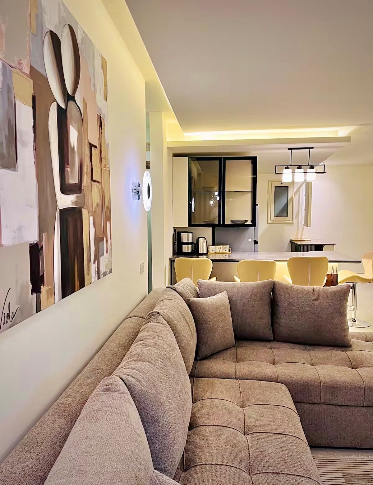 Bienvenido a tu refugio de diseño en el quinto piso, a solo unos pasos del Nilo, en el corazón de Zamalek. Este departamento de un dormitorio recién amueblado combina un cálido diseño contemporáneo, acabados de primera calidad y comodidad a nivel de hotel en una de las direcciones más prestigiosas de El Cairo. El espacio cuenta con tonos neutros suaves, obras de arte modernas, iluminación ambiental y muebles cuidadosamente seleccionados para crear un ambiente tranquilo y exclusivo.
