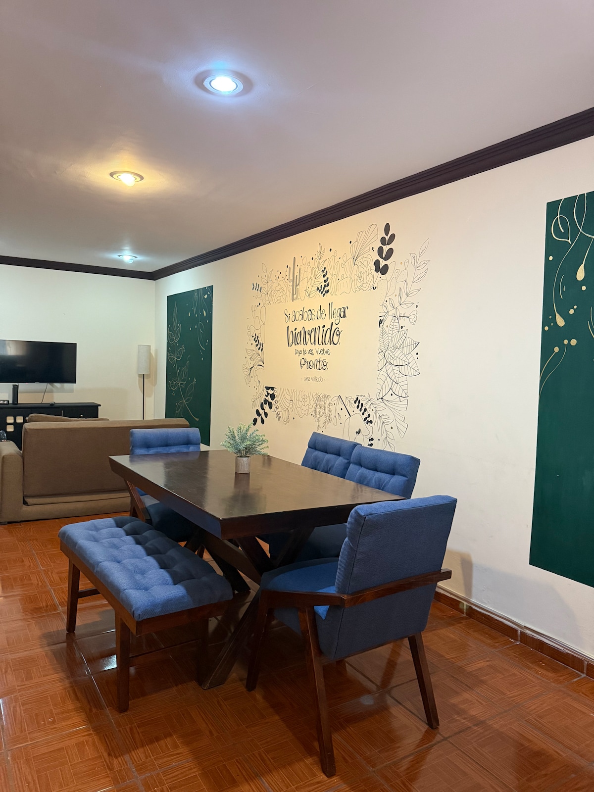 Amplios espacios con gran iluminación natural, seguridad y limpieza, 205m2 a tu disposición en la avenida principal a 5 minutos del área de la feria con todo a la mano para tu comodidad ya sea solo, en familia o de trabajo. Ideal para descansar, meditar, relajarse o trabajar. (huésped a partir del 3o que ocupe la casa debe ser dado de alta, huésped extra $290. No requieres de cargar con elementos extra, todo lo tendrás aquí. Amplia habitación con una cama king y 2 Indiv. con baño propio.
