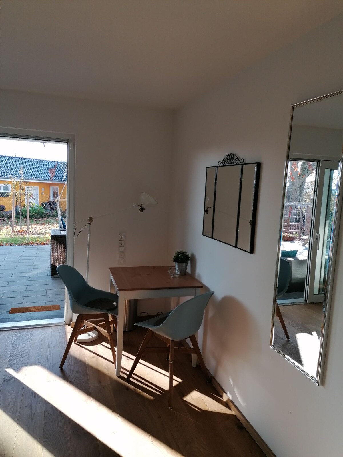 Unser kleines Apartment liegt in unserem neu gebautem Haus in traumhafter Lage in Bonn Oberkassel - direkt am Wald und ca. 10 Laufminuten zum Rhein. Alles bei uns ist neu und modern aber mit einem hohen Grad an Gemütlichkeit. Das Zimmer verfügt über alle Dinge, die man als Reisender braucht. Unsere kleine Küche ist ausgelegt für eine schnelle Mahlzeit am Abend ohne Herd.Wir bieten euch einen täglichen Spülservice an. Die Lounge vor eurem Eingang macht Euren Aufenthalt perfekt.