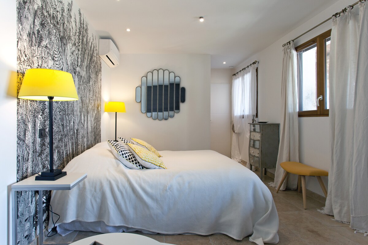 Venga a disfrutar de un momento en pareja fuera del tiempo, idealmente situado entre Lattes y Palavas, a solo 5 minutos de Montpellier. Habitación privada con ducha de hidromasaje, baño, inodoro y televisión, que se abre a un patio privado con cocina de verano y jacuzzi. Carril bici a Palavas a 2 minutos, mercado, restaurantes y playa cerca. 🌿 Masaje de bienestar 25 €/20 min con reserva previa Planity Põsenbysev (salón contiguo).