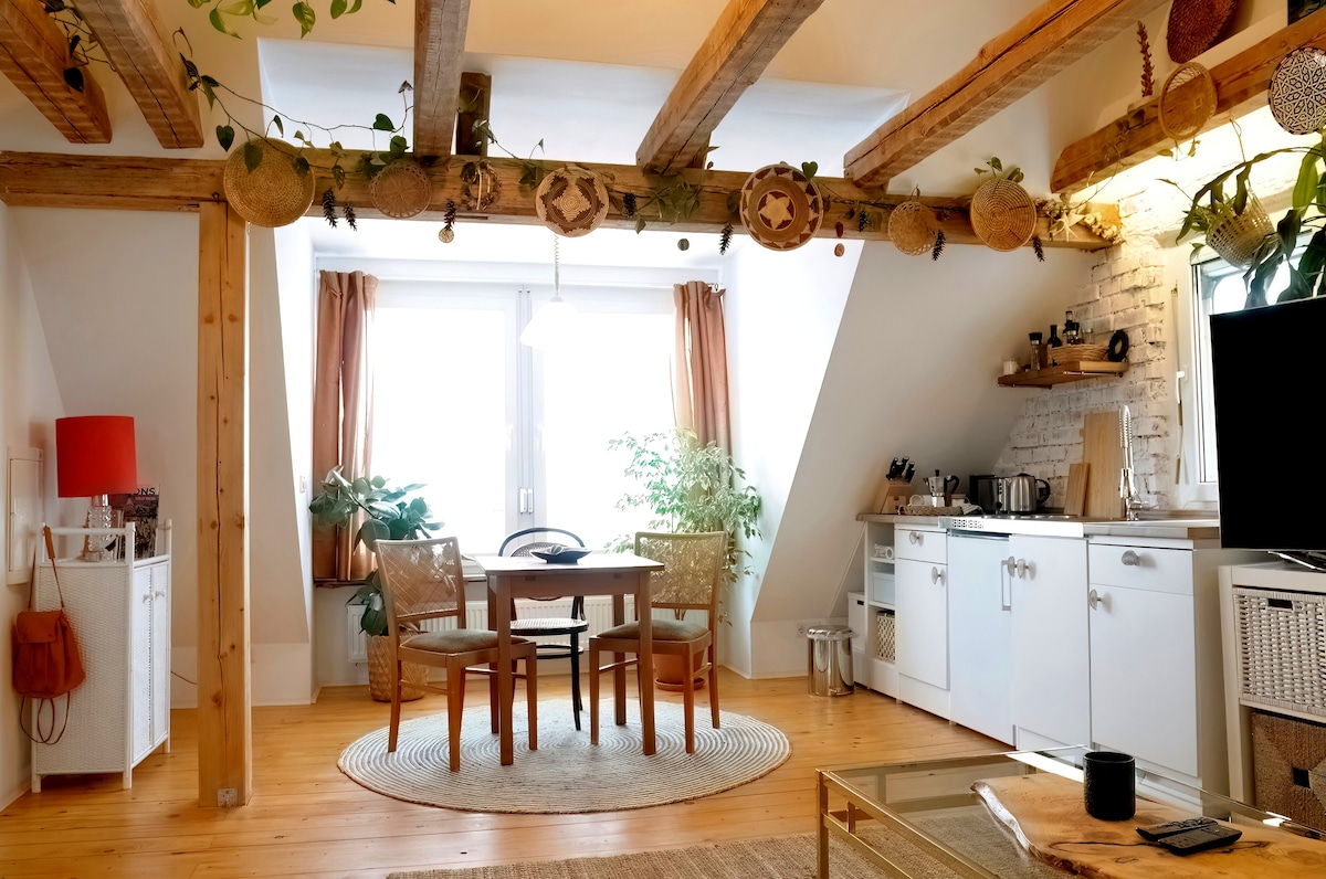 Apartamento estudio moderno, recién renovado, tranquilo y totalmente equipado en una ubicación muy buena. Además, ofrezco dos bicicletas que puedes utilizarlas de forma gratuita. El baño es grande y la cocina pequeña está separada de la zona para dormir. A pie, está a solo unos 15 minutos del casco antiguo, puedes caminar relajado a lo largo del río. Hay estacionamiento gratuito. En la pequeña cocina totalmente equipada, hay dos platos, así como un microondas con función para hornear.