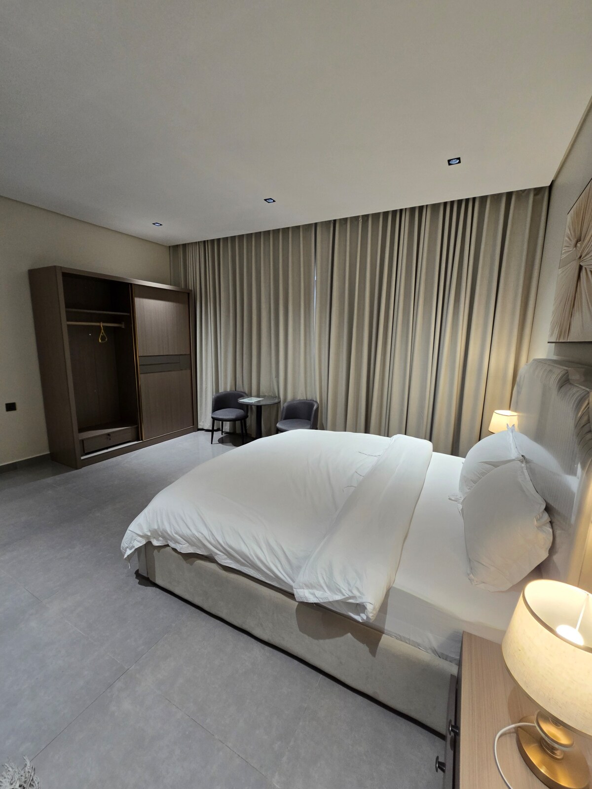 استمتع بتجربة فريدة من نوعها في غرفة نوم خاصة توفر الاسترخاء والراحة. تتضمن الشقة سريراً ومنطقة معيشة حيث يمكنك الاستمتاع بالمشاهدة على شاشة ذكية مقاس 65 بوصة. هناك أيضًا مطبخ منفصل وقهوة لتلبية جميع احتياجاتك. غرفة نوم و صالة فندقيه دخول ذكي بتصميم مريح 5 دقائق مشي الى الاحساء مول 5 دقائق مشي لحديقة الملك عبدالله 10 دقايق بسيارة لجامعة الملك فيصل 10 دقايق بسيارة لكلية الادب 10 دقايق بسيارة لمطار الاحساء الدولي 15 دقايق بسيارة لمحطة القطار والكوفيهات قريبة من مطاعم
