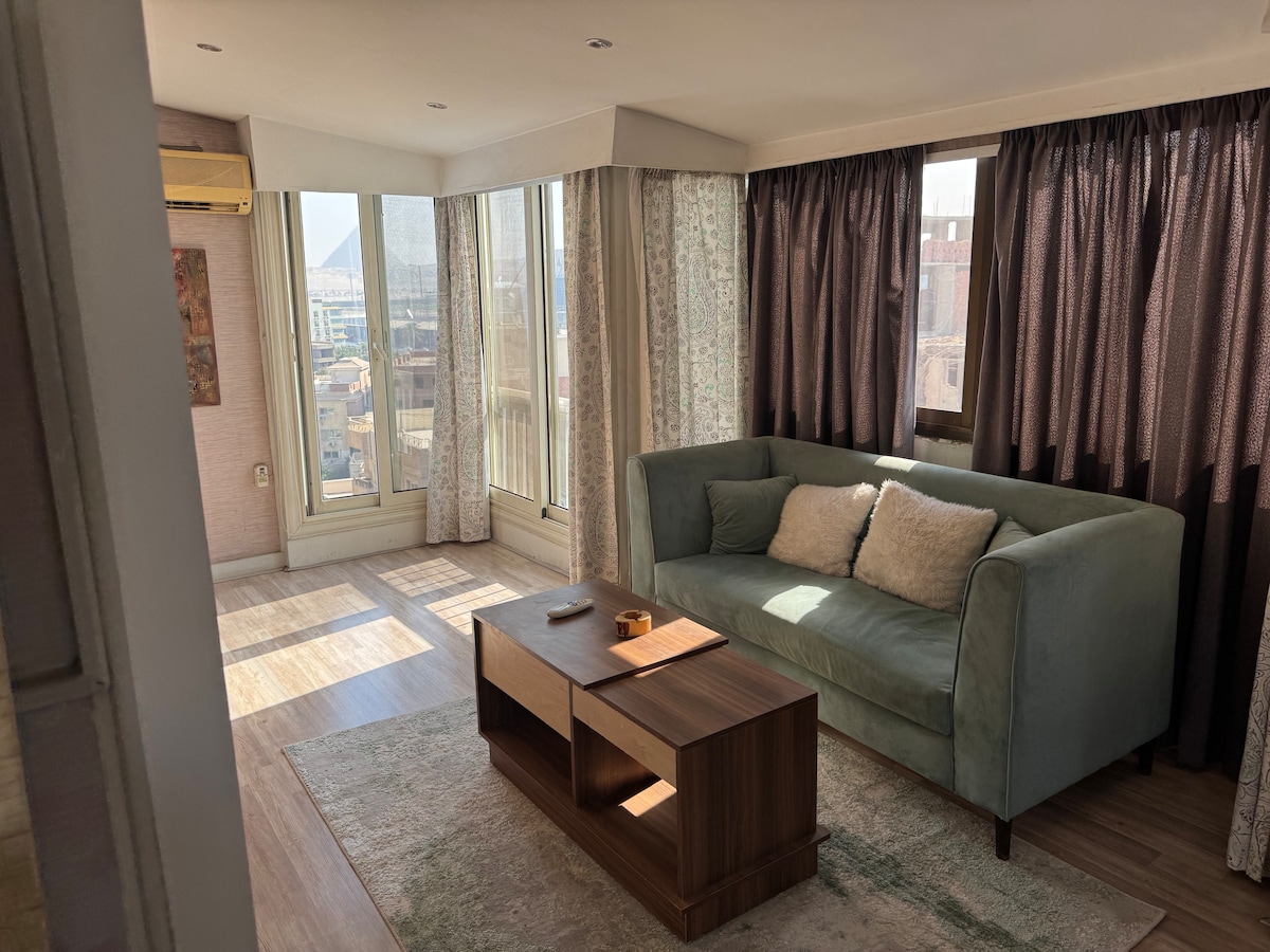 ¡Bienvenido a nuestro impresionante apartamento con una increíble vista a las pirámides! Disfruta de las impresionantes vistas de uno de los lugares más emblemáticos del mundo desde la comodidad de tu propio espacio. Este apartamento bellamente diseñado está estratégicamente ubicado para ofrecer una vista panorámica ininterrumpida de las majestuosas pirámides. Sumérgete en el impresionante paisaje mientras te relajas en la espaciosa sala de estar, con grandes ventanales que muestran la pirámide en todo su esplendor.