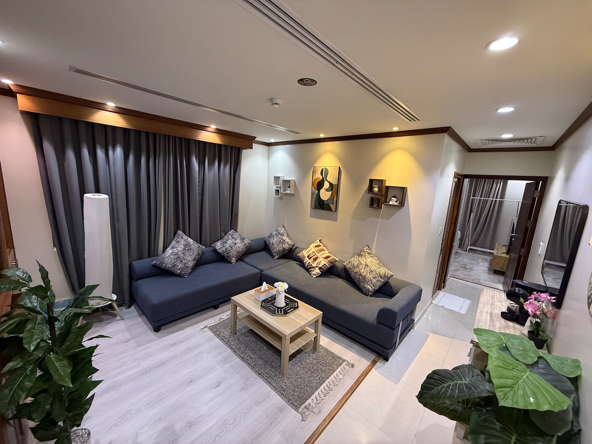 Lujoso estudio moderno en Al Khobar Una estancia elegante que combina comodidad y lujo. Características del apartamento: • Dormitorio con cómodos colchones. • TV inteligente de 65 pulgadas. • Suscripción a Netflix y Watchvip. • Entrada autónoma - Limpia el baño con suministros básicos. Ubicación ideal: • A 3 minutos del puente de Bahréin. • A 5 minutos de Al Khobar Corniche. • A 10 minutos del centro comercial Al Rashed. • A 15 minutos de Haff Moon. • Cerca del Ajdan Walkway Wook y de la isla Al-Daghir.