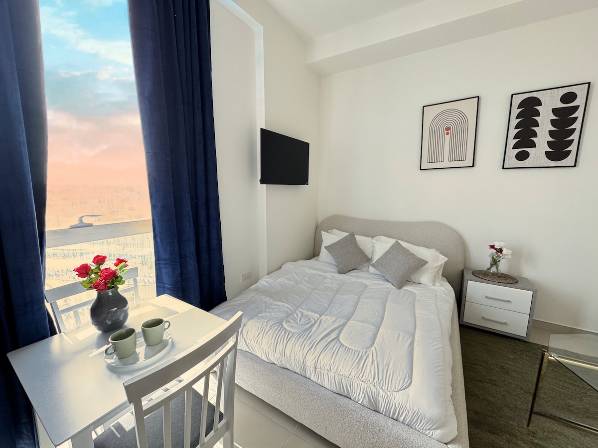 Donde la comodidad se une al estilo, este exclusivo apartamento tipo estudio tiene una excelente ubicación, a 8 minutos del aeropuerto, a 15 minutos de las atracciones de la isla Yas, a 15 minutos de la gran mezquita Sheikh Zayed, a 25 minutos del centro de la ciudad y a 45 minutos estás en el puerto deportivo de Dubái, y está cerca de varios centros comerciales, restaurantes y cafeterías, este elegante apartamento promete una estancia cómoda y memorable.