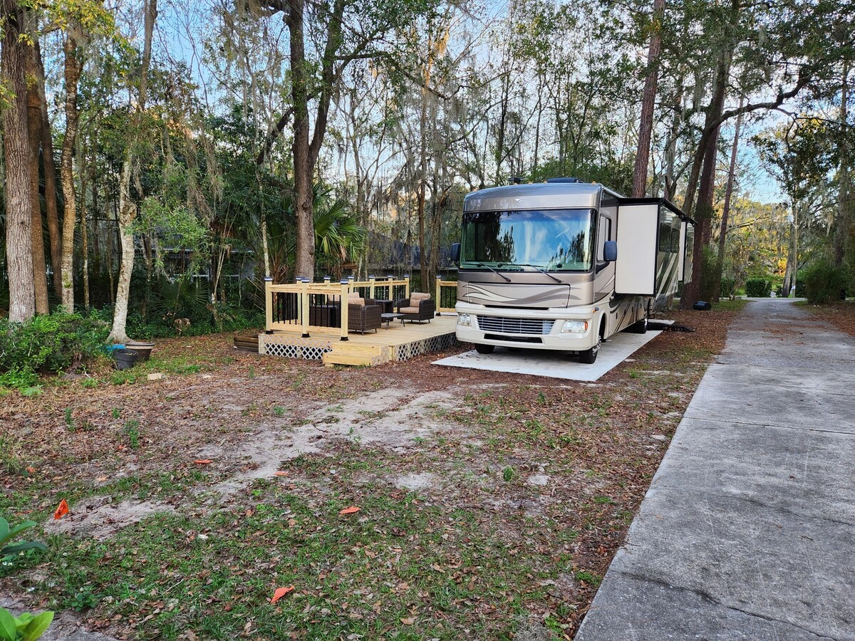 Enjoy well deserved rest and relaxation in our luxury class A RV situated on a golf course and the beautiful Payne's Prairie. Centrally located-close to shopping, restaurants, University of Florida, downtown and directly off of I-75. Only 2 miles from Celebration Point with movie theatre, restaurants and entertainment. NOTE: Sleeps 4 Adults and 2 Children(Bunks for children/teenagers) Quiet Time: 10pm - 8am weeknight, 10pm - 8am weekend NOT A PLACE FOR PARTYING OR LOUD MUSIC