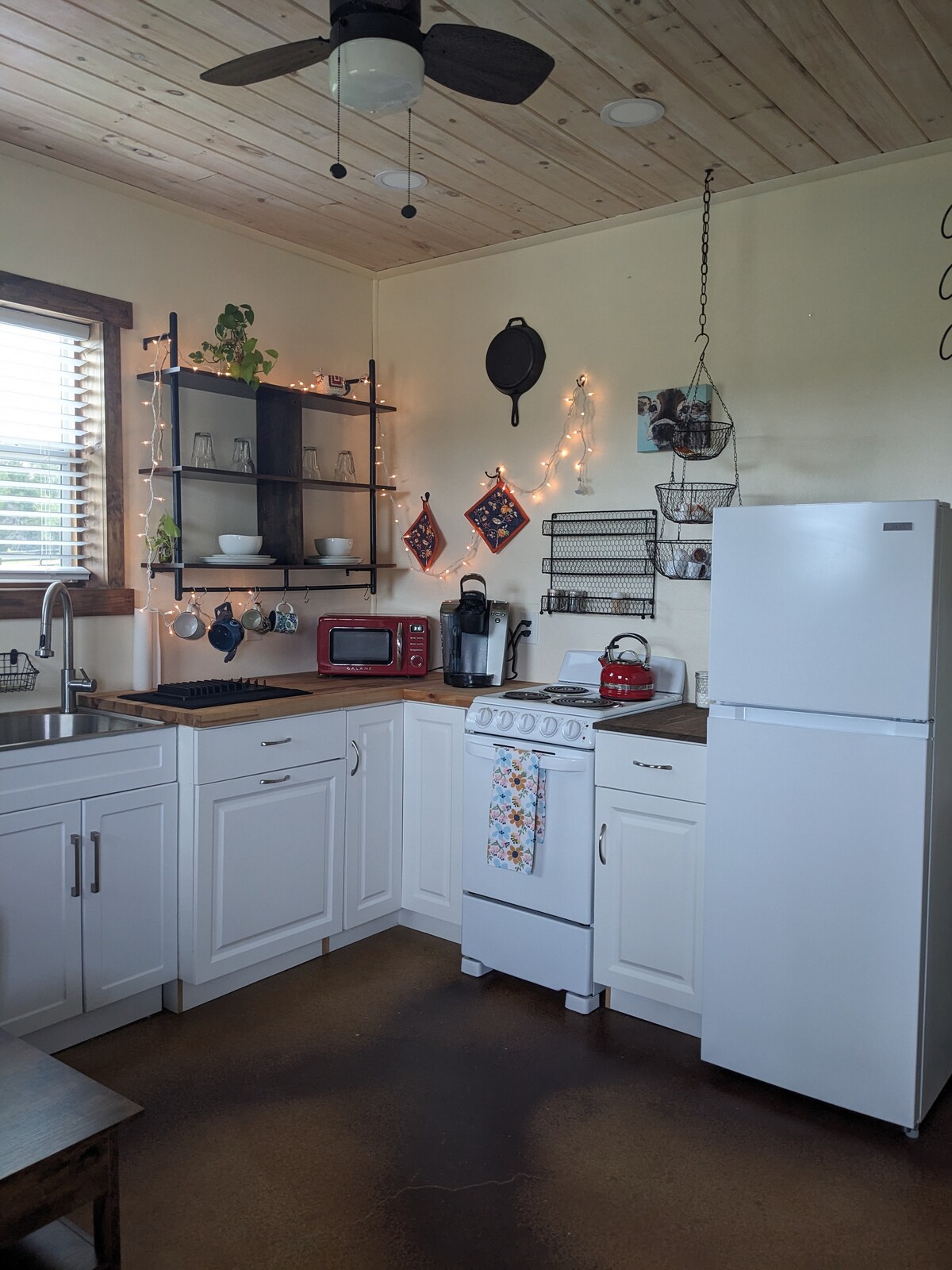 Vuelve a conectar con la naturaleza con esta escapada inolvidable. Disfruta de hermosos amaneceres y atardeceres desde el porche delantero. La casa Bunk está ubicada en el granero, detrás de la casa principal. La cocina ofrece una nevera/congelador compacta, estufa/horno con utensilios. Incluye una cafetera Keurig y café. El dormitorio tiene una cama tamaño queen y un pequeño armario. El aire acondicionado/calefacción mini split se encuentra en el dormitorio. Wifi. Acceso cerrado a la granja.