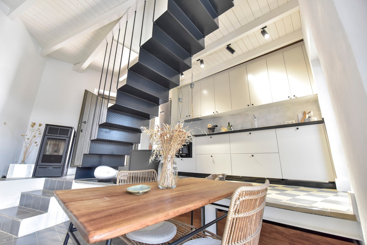 El alojamiento no responde a una casa rural serrana, es más bien un apartamento coqueto y decorado con buen gusto, con materiales nuevos y fuertemente aislado; de imagen contemporánea. Claro que al mirar por la ventana, o entreabrir la doble puerta, la exultante naturaleza se mete por la retina y nos embarga un bosque mediterráneo antiquísimo. El apartamento está perfectamente equipado con sábanas, toallas y menaje hasta 4 huéspedes. Con estufa de pellets. Oferta especial al alquiler 7 días.