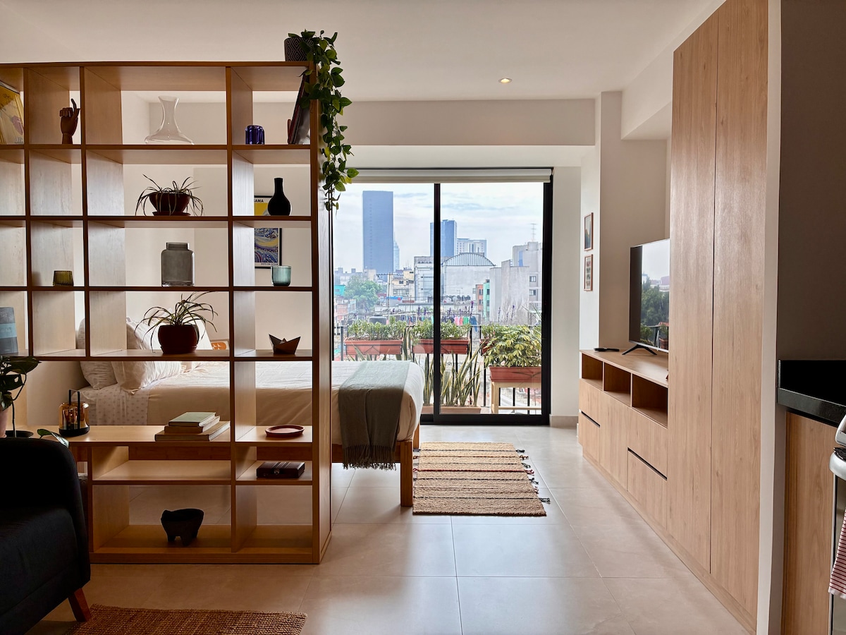 Bienvenidos a un espacio preparado con mucho cariño para brindarte una experiencia cálida en la Ciudad de México. Este estudio, aunque es pequeño, es sumamente acogedor, perfecto para compartir momentos memorables con tu pareja o amigos, combinando comodidad y una ubicación inmejorable. El estudio está diseñado para que te sientas como en casa, mientras exploras todo lo que la Ciudad de México tiene para ofrecer. Vive una experiencia inolvidable en un espacio pensado para ti.