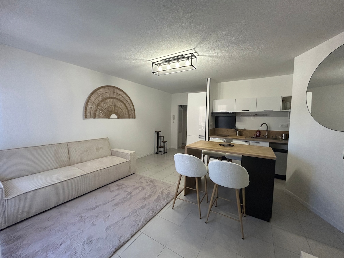 Coqueto T2 con aire acondicionado situado a 5 minutos andando del corazón de la ciudad episcopal de Albi. Se alojará en un apartamento residencial que consta de: - un dormitorio grande con una cama de 140/190, un armario doble (espacio suficiente para una cuna, pero no incluida) - una cocina equipada: fogones, nevera pequeña, microondas, cafetera, - una sala de estar con sofá cama y televisión, - un baño y un aseo separado (toallas no incluidas), - no hay WIFI lo sentimos :)