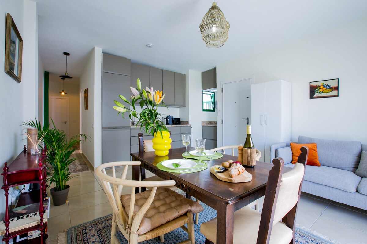 Welcome to Your vibrant, artsy retreat in Alcala, Tenerife with captivating partial ocean views from a cozy balcony and a sprawling roof terrace. Our sun-drenched, 2-bedroom apartment, freshly renovated in lively colours, is the perfect fusion of style and comfort. Offering quality appliances, super-fast Wi-Fi, Air Condition. Ocean is 100 meters away, 4 different playgrounds for children & Blue Flag beaches. The the right place for Your family vacation or romantic getaway.