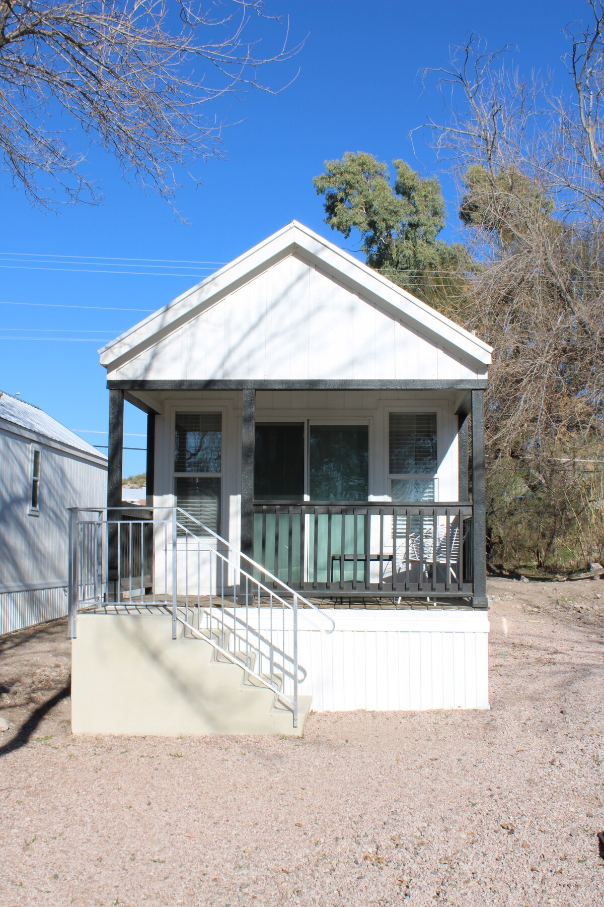 Casita en el rancho Mustang Trail. Propiedad privada unifamiliar para caballos en 4 acres a lo largo del río Hassayampa con vistas a Wickenburg. Casita privada para huéspedes en un entorno desértico natural y con aparcamiento gratuito. ¡La terraza frontal completa permite vivir al aire libre con preciosas vistas! Hermoso y aislado barrio junto a Remuda Ranch y cerca del campo de lazo Rancho Rio. Corral de caballos y aparcamiento de remolques disponibles. Hay mucho espacio para explorar y acceso rápido al desierto. Muchos senderos para caballos, bicicletas, autocaravanas, etc.
