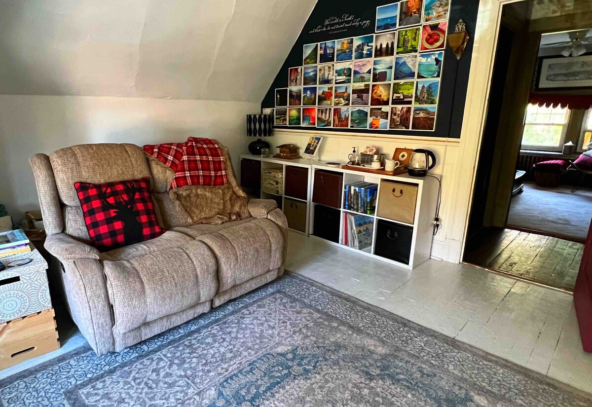 Habitación victoriana bien restaurada con baño privado y espacio de oficina/cocina pequeña. Cama tamaño queen, TV, baño/ducha recién renovado. Wifi gratuito incluido.