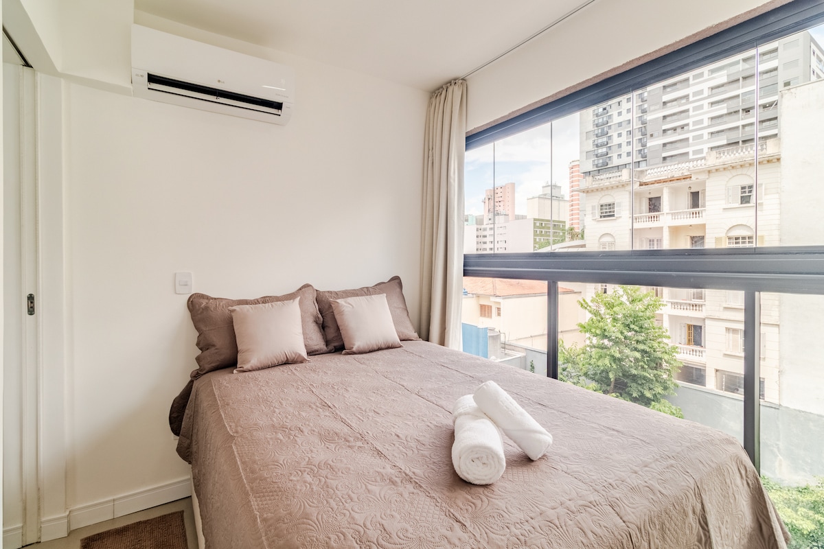 Apartamento nuevo y muy acogedor, Disfruta de una experiencia elegante en este lugar bien ubicado, A unos 5 minutos a pie del Allianz Parque. Junto a varias tiendas, medios de transporte, parques, lugares de interés y edificios de negocios. Disfrute de un apartamento moderno con cama queen, cocina compacta, microondas, TV y muchas otras comodidades. Tenga la seguridad de un condominio con conserjería las 24 horas, piscina, gimnasio y lavandería. Más que alojamiento, una experiencia.
