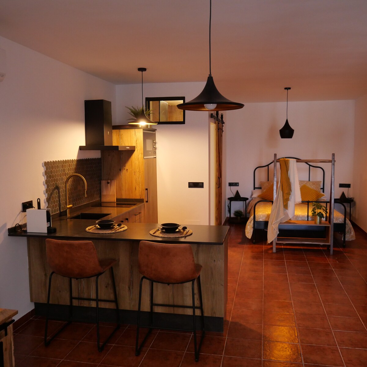Estudio nuevo tipo loft en una zona muy tranquila de San José. Con PISCINA COMPARTIDA con otros 2 alojamientos (en total para 6/7 personas), aparcamiento en la misma puerta, WIFI y espacio al aire libre. El jardín ofrece estupendas vistas al mar y al Cerro del Fraile (un antiguo volcán originado bajo el mar) y espacio para comer, leer y relajarse junto a la piscina. La casa se encuentra a 5-10 minutos andando a la playa de San José, bares y tiendas. Ideal para parejas amantes de la naturaleza
