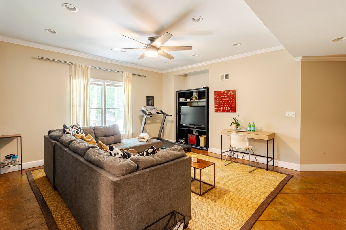 El alojamiento perfecto en el norte de Atlanta. Un apartamento privado completamente independiente con todo lo necesario para que te sientas como en casa. Relájate en un cómodo sofá modular en forma de L en la sala de estar. Hay un aspecto limpio y ordenado en el interior, con sus pequeños lemas de buena voluntad en la pared, iluminación sutil y cocina rústica completa. Encuéntrate a solo unos minutos del centro comercial North Point Mall con su cine y restaurante y a menos de una milla de Big Creek Greenway. El anfiteatro Ameris está a solo 7 minutos. El centro de Alpharetta y el Avalon están a 10 minutos. Acceso por escaleras. Cocina eléctrica, nevera, microondas Cable AT&T Uverse, wifi, TV de pantalla plana Reproductor de Blu-Ray con Netflix. Plancha y tabla de planchar dentro del armario. Keurig en la cocina Apartamento entero Entrada para vehículos Vivimos en el lugar, así que si necesitas algo o quieres consejos sobre la zona, no dudes en ponerte en contacto con nosotros. Ubicado en un terreno privado rodeado de árboles, el apartamento está situado en un barrio tranquilo. La residencia de los anfitriones se encuentra lejos de la carretera, lo que añade privacidad y aislamiento a la dirección. Está a menos de 2 millas del centro comercial North Point y más allá. La propiedad no se encuentra cerca del transporte público. Una vez que localices nuestra entrada, baja por la colina de la entrada y aparca delante del garaje junto a las escaleras. La puerta del garaje es un modelo ultra silencioso y solo accedemos a ella de 8:00 a 20:00 horas.