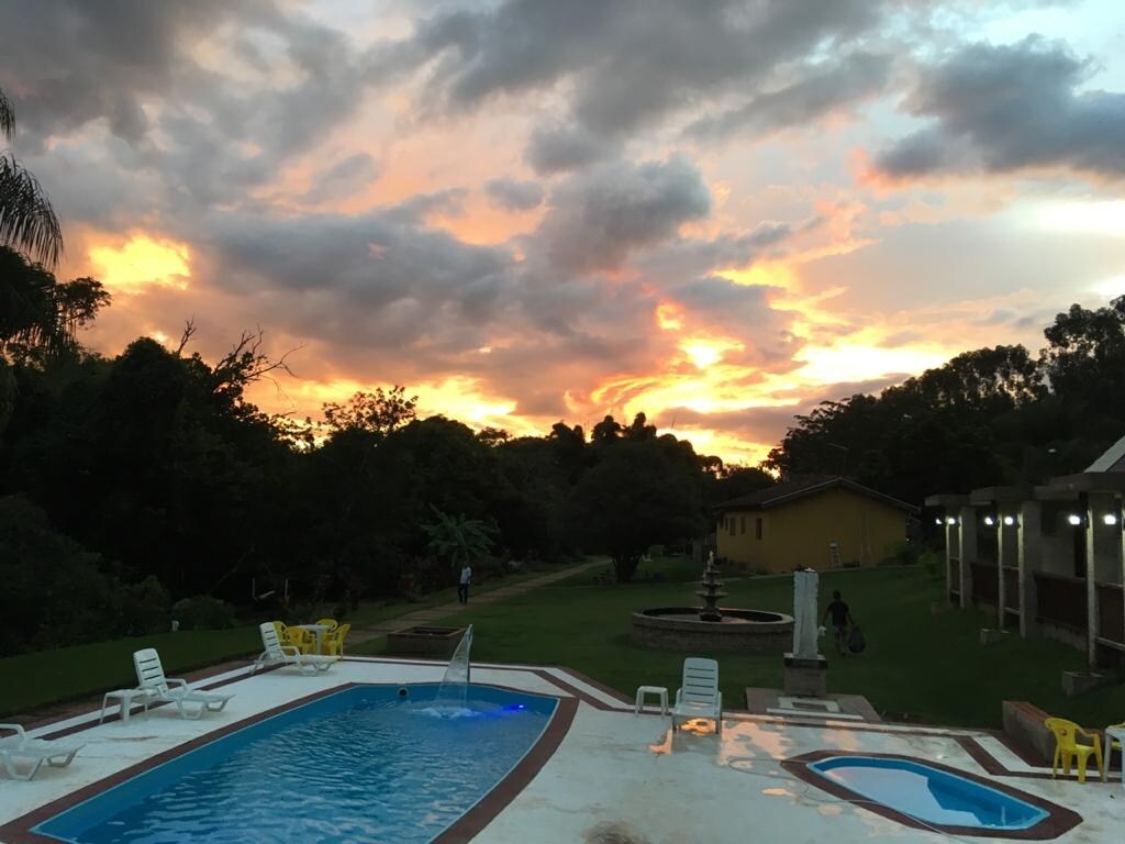Espaço aconchegante, tranquilo e seguro. Ideal para quem quer relaxar e curtir piscina com um churrasco em área gourmet, seja em amigos ou família e até comemorações pouco maiores. Bairro novo, possui mercado pequeno a menos de 5 minutos a pé. Fácil acesso ao centro da cidade ( distância de 5 minutos de carro) com supermercados maiores, comércios, bancos, Praça Central e outros pontos turísticos