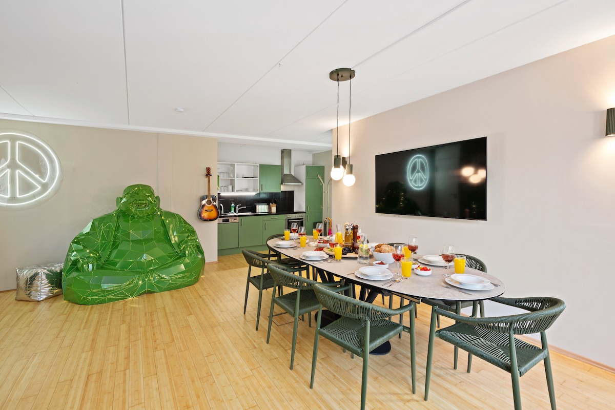 Welcome to our top-notch 2-bedroom serviced apartment in Hamburg-Ottensen, hosted by the legendary Boogie Park Studio - Udo Lindenberg's second home! Accommodating 4 guests, it's just a 10-minute walk to the harbor, train station, Elbe beach, and even the Reeperbahn. Ottensen is one of Hamburg's most beautiful neighborhoods, brimming with lively bars, shops, and a twice-weekly market. Renovated in 2024 we usually use it as artist residence for the studio. From time to time some slots are free.
