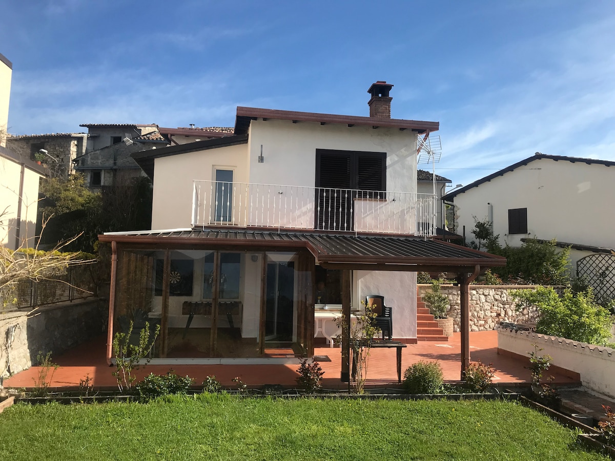casa de piedra y madera rodeada de vegetación La casa se encuentra a unos 40 km de Pescara, a pocos metros del pueblo medieval de Corvara, a unos 750 metros sobre el nivel del mar. Está ubicado en el centro de un bosque de unos 25000 metros cuadrados totalmente utilizable. El lugar es muy tranquilo,la calle es privada con puerta Desde casa hay varios senderos que permiten paseos relajantes Desde Corvara puedes llegar fácilmente a Rocca Calascio, 30 km Stefano di sessanio, 28 km Sulmona, 25 km del parque de lavandería a 30 km