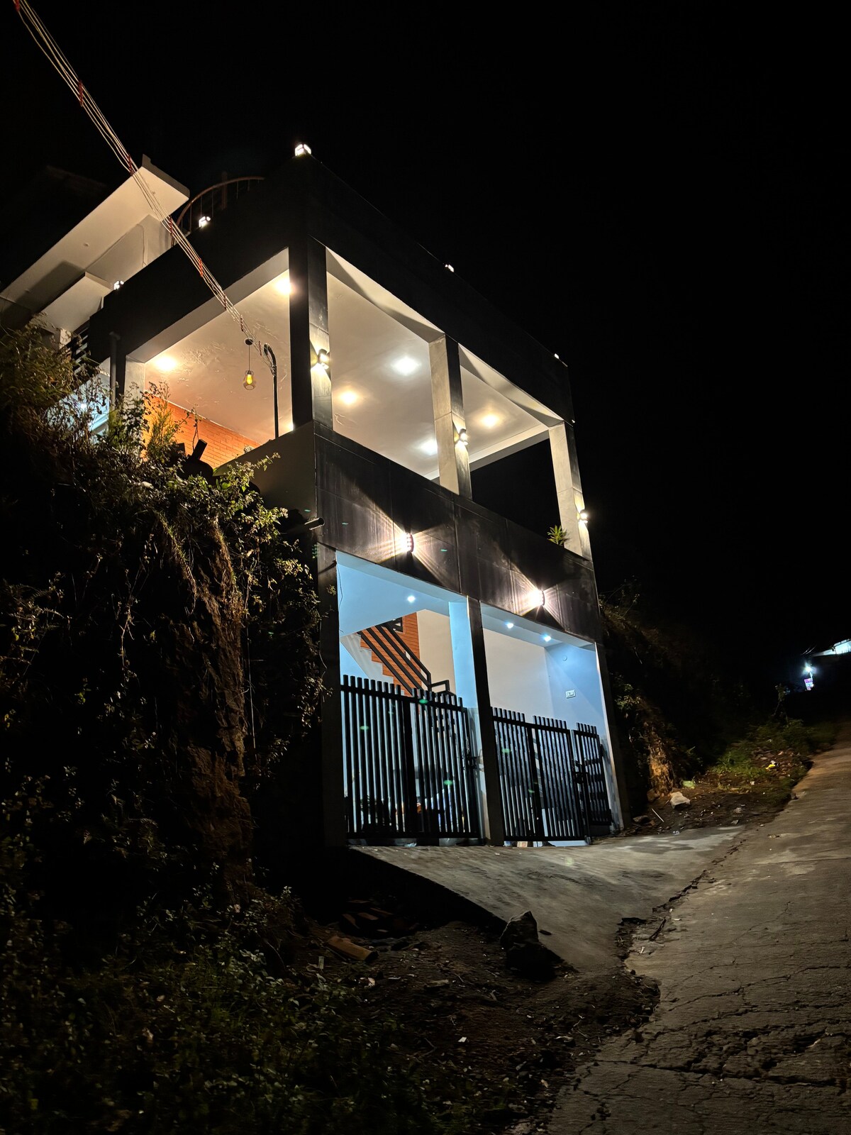 This A-frame, 3-bedroom house is on a quiet street in Vilpatti, just 6 km from the central Kodaikanal. With nearly three-quarters of the front built with glass, the living room offers amazing views of the serene mountains. The house features a beautiful, extensive patio, a mini library, comfortable work seating, and a fully functional kitchen, making it perfect for families with kids. The sunrise view, with rays falling on the mountains, is best enjoyed from the first floor.