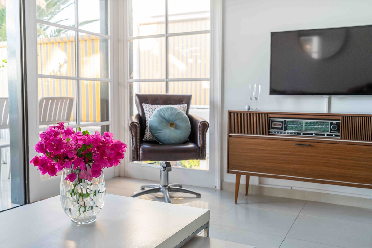Relax in our recently renovated apartment with stunning ocean views from two terraces just 150 meters from the ocean. Our cozy one-bedroom apartment features a comfortable king-size bed and modern amenities for a pleasant stay. We're committed to sustainability, providing natural and eco-friendly cleaning and personal care products for your convenience. Families with babies are warmly welcomed! Take a leisurely stroll along the new coastal pathway or just relax and enjoy the community pool!